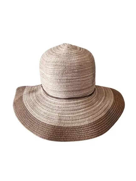 CAPPELLO PER DONNA, 70% COTONE COLOR SABBIA E MARRONE CON CORDINO IN VELLUTO