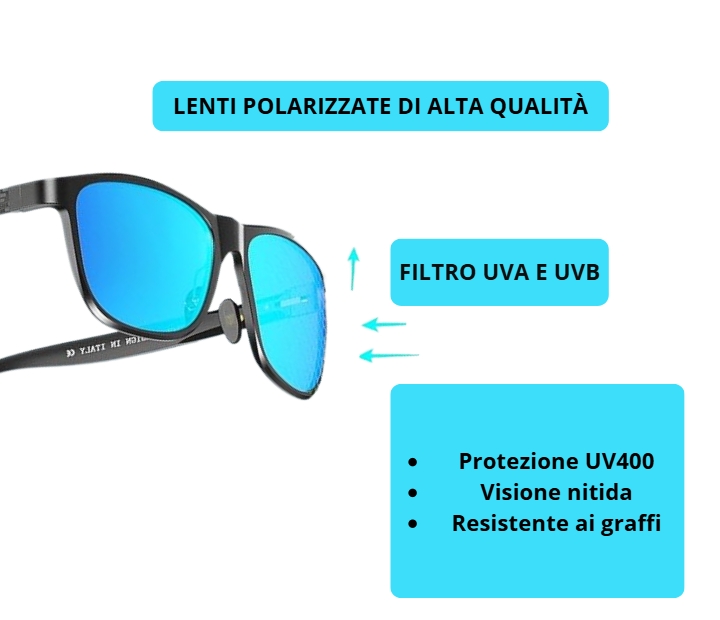 Occhiali da Sole Polarizzati da Uomo UV400 – Montatura in Metallo Alluminio e Magnesio, Lenti TAC Antiriflesso, Stile Premium per Sport e Guida