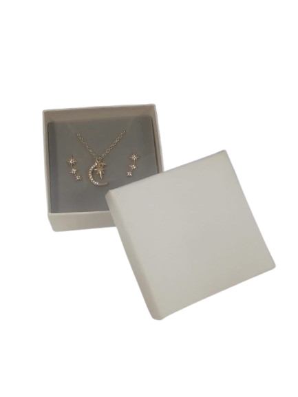 Lasciati conquistare dalla magia del cielo stellato con questo raffinato set gioielli Luna e Stelle...
