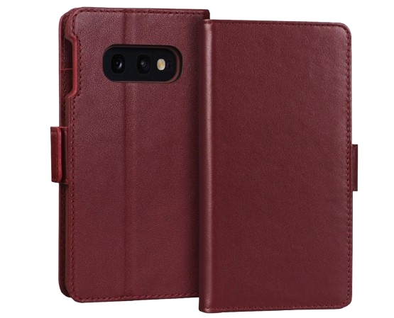 Custodia Portafoglio in Ecopelle Compatibile con Samsung Galaxy S10e – Antiurto, con Porta Carte e Supporto Video – Rosso Vino