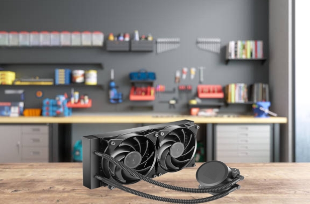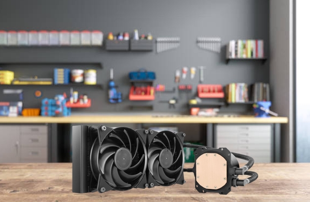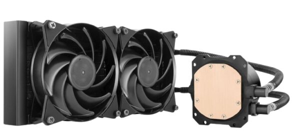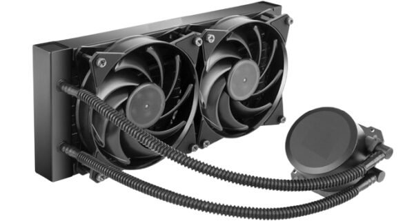 Il radiatore a bassa resistenza, progettato per garantire un flusso termico efficiente, è raffreddato da due ventole MasterFan Pro 120 Air Balance. Le loro pale ibride e il controller IC Silent Drive offrono un equilibrio perfetto tra pressione statica e flusso d’aria, mantenendo un funzionamento silenzioso (6–30 dBA).
