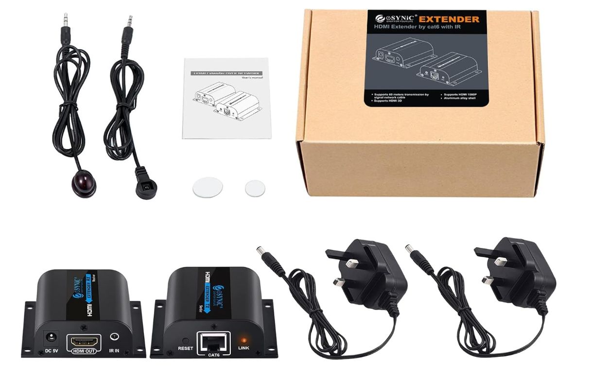 Recensisci per primo “eSynic Extender HDMI con 2 uscite 60m 1080P su Ethernet Rete HDMI e cavo per Supporta Sky HD Box Laptop PC DVD Trasmissione segnale PS4 e IR 60M IR Nero” Annulla risposta