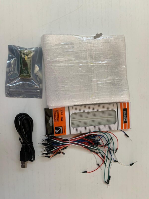 Il kit contiene una scheda microcontroller Raspberry Pi Pico, così come 3 intestazioni pin e un cavo micro USB per iniziare. È inclusa anche una guida rapida per codificare il tuo Raspberry Pi Pico con Micropython – programmare è ora ancora più facile.