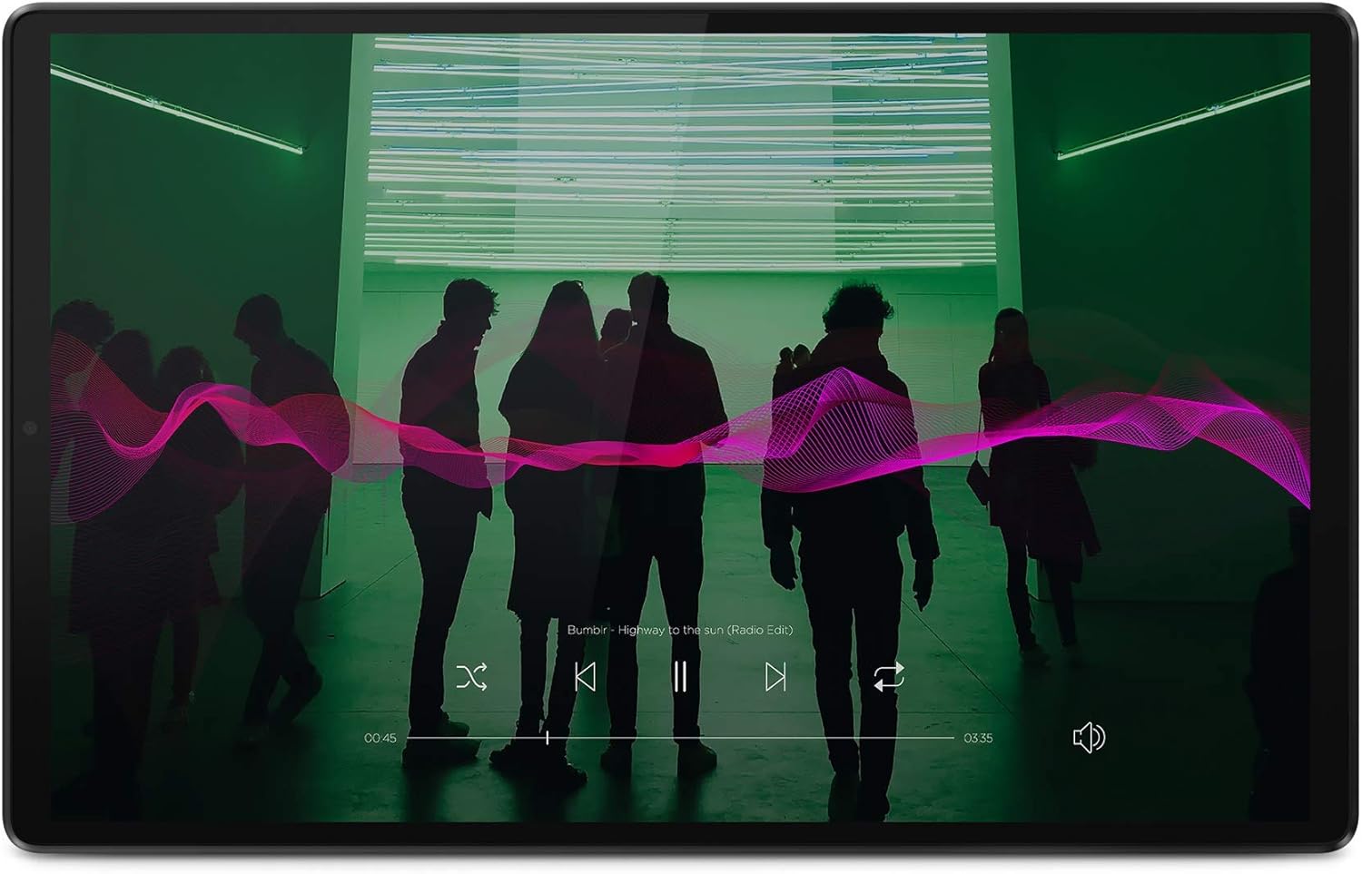 - Contenuto della confezione: Lenovo Tab M10 Plus, grigio ferro, alimentatore da viaggio, cavo USB di tipo C, documentazione.