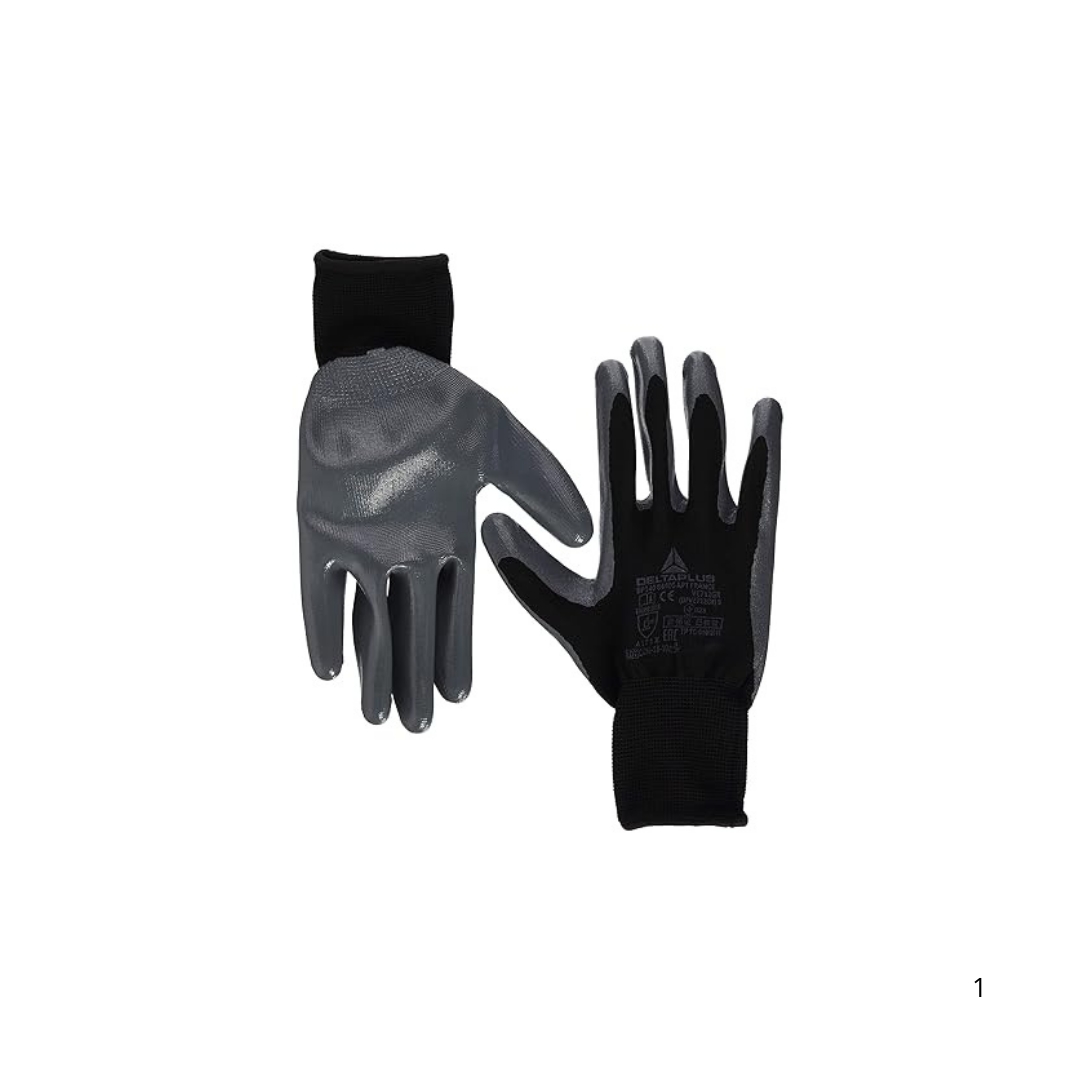 Guanti da Lavoro a Maglia Fine in Poliestere con Palmo in Nitrile – Grigio/Nero, Taglia 09