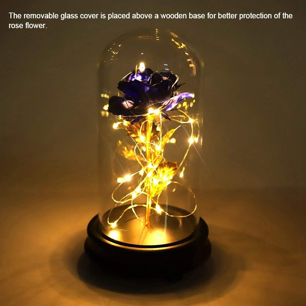Rosa blu sottovetro con lucine, regalo romantico