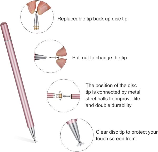 Penna per Samsung, colore rosa Matita Stilo Con Punta Pennino Capacitiva e Cappuccio Compatibile Con Tutti i Touchscreen Tavoletta, Universale Penne per iPad,iPhone,Smartphone,Touchscreen e Tablet
