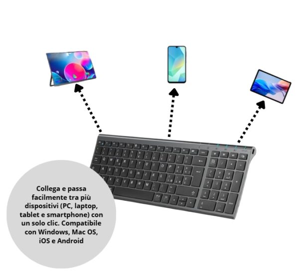 Tastiera Bluetooth 5.1 Multi-Dispositivo Ricaricabile USB-C con Tastierino Numerico – Design Ultrasottile Ergonomico – Compatibile Windows, Mac, iOS, Android – Grigio Space
